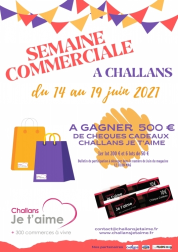 Du 14 au 19 juin 2021, grande semaine commerciale à Challans avec 500 € de chèques cadeaux à gagner ! 1er lot 200 € et 6 lots de 50€