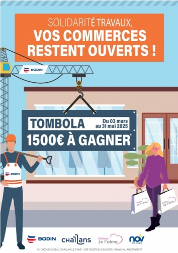 Pour tout passage en caisse, recevez 1 ticket de tombola et tentez de gagner 500 € de chèques cadeaux CHALLANS JE T'AIME chaque mois (1 ticket par jour et par personne, montant minimum d'achat au choix du commerçant).